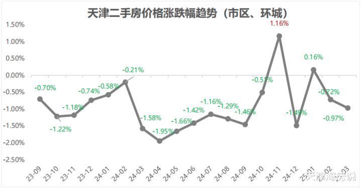 据365房地产研究机构数据,2025年3月,市区+环城二手房价格环比下跌0.97%。